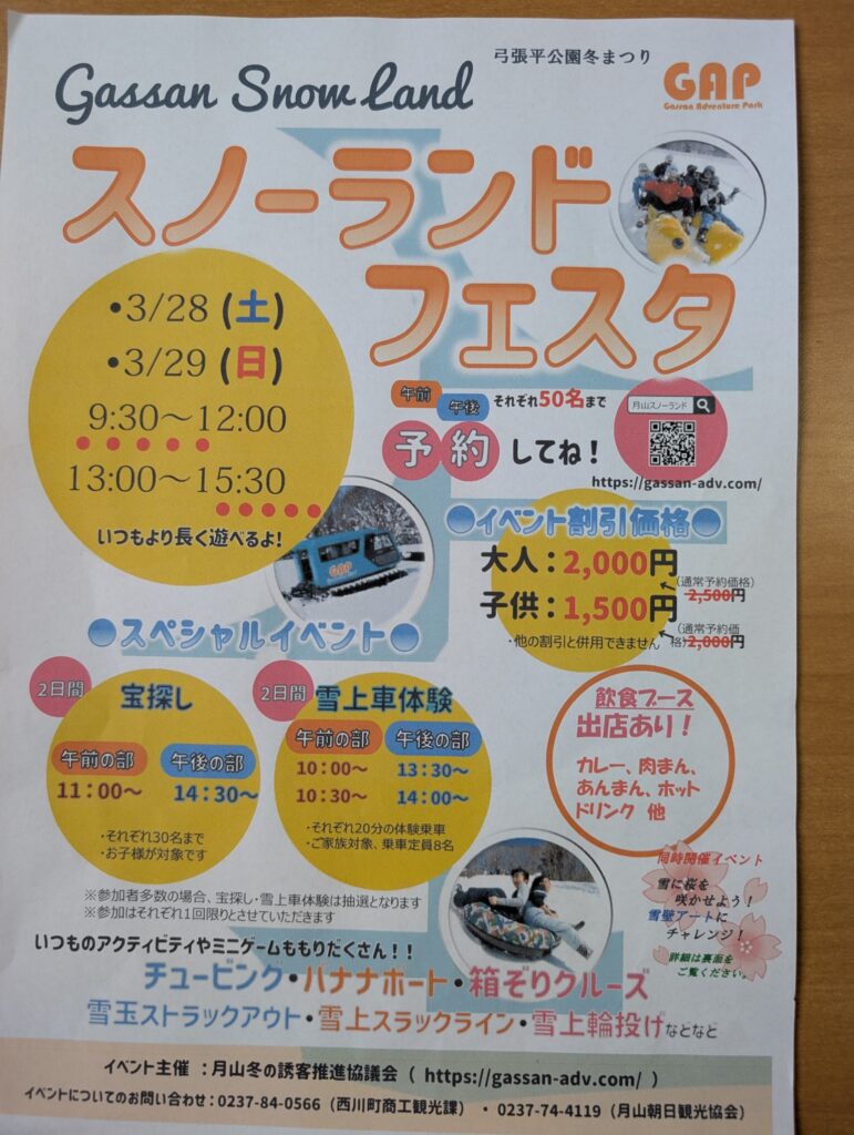 3月28日(土)と29日(日)の2日間、月山スノーランドフェスタを